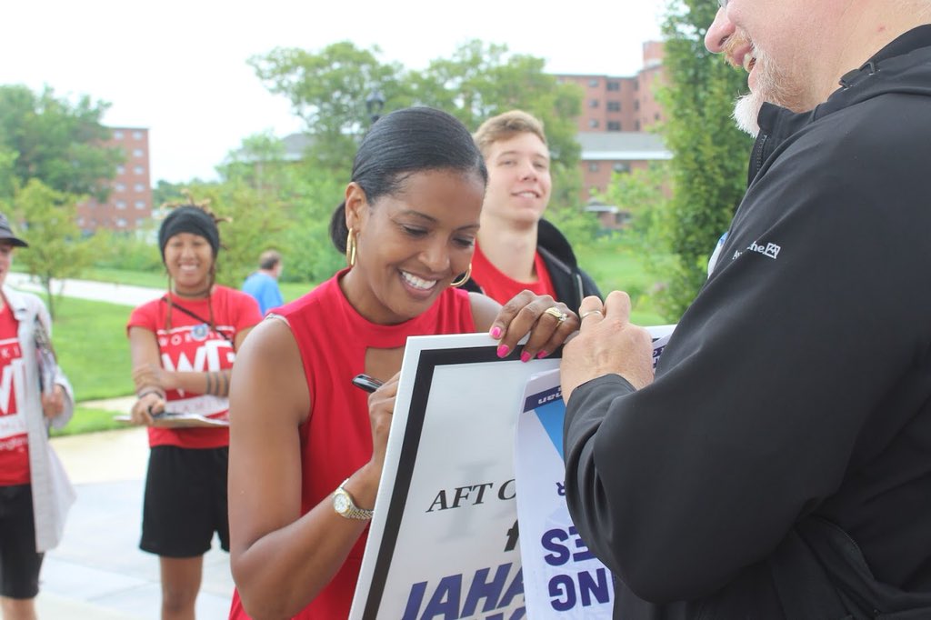 Rally in Meriden with my union brothers and sisters #Union strong #voterowb. Thank you AFT Connecticut and Working Families Party!!pic.twitter.com/HjZ0yI0mpS