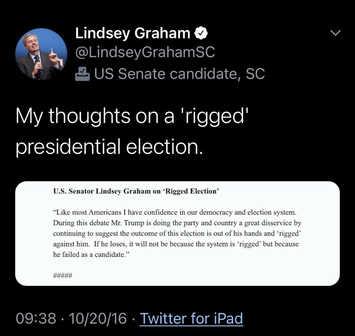 Lindsey is very concerned about election integrity in the states Trump lost. Only in the states Trump lost.