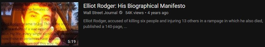 Thanks, saw that reuploaded video but checked the URL provided in the description -- sorry for the confusion. Still the "elliot amv" video was correctly taken down, but not for hate speech. That specific video received violated our policies on harmful/dangerous content.