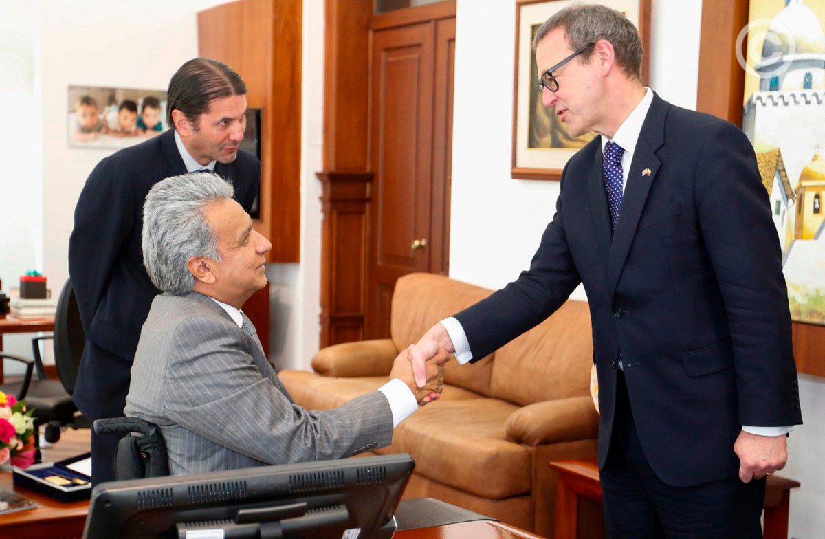 #AudienciaConLenín | Presidente@Lenin Moreno se reunió con@SMcDonaldFCO, jefe diplomático de la Cancillería británica. Abordaron temas que marcan la agenda internacional, como el cambio climático y celebraron las buenas relaciones que ahora existen entre Ecuador y Reino Unido.pic.twitter.com/onJRzPWqHD