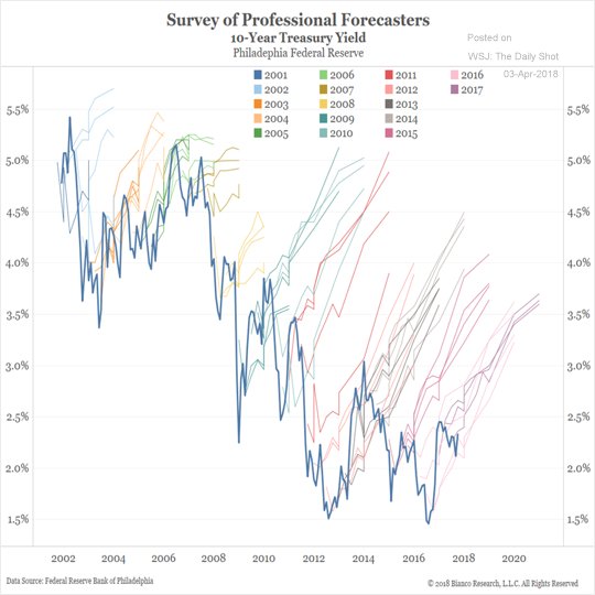 Next time Wall Street gives you a forecast, show them this chart. Professional forecasters have been wrong about levels, wrong about direction, consistently wrong, and wrong by orders of magnitude for 20 years. Reason? Bad models = Bad forecasts.