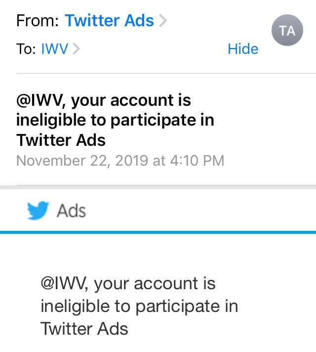 We’re banned, too. Can’t even promote our newsletter or tv hits. We can’t even use Twitter cards for organic purposes. We should at minimum be allowed to continue to use cards. We have hundreds of creatives on their that we can no longer use. This new policy is extreme, @jack.pic.twitter.com/nVNVquJDVx