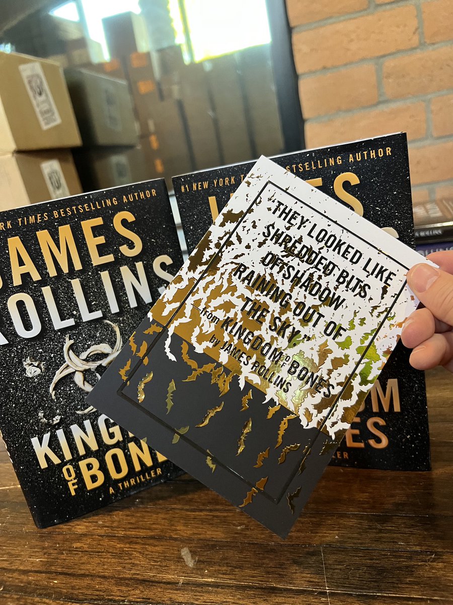 Arrived in Scottsdale and got my first look at the EXCLUSIVE insert for tonight’s launch event for KINGDOM OF BONES at the Poisoned Pen. The metallic sheen, embossing, and heavy card stock are really impressive in person. Hope to see you all at the store!pic.twitter.com/j7VJcK8yBC