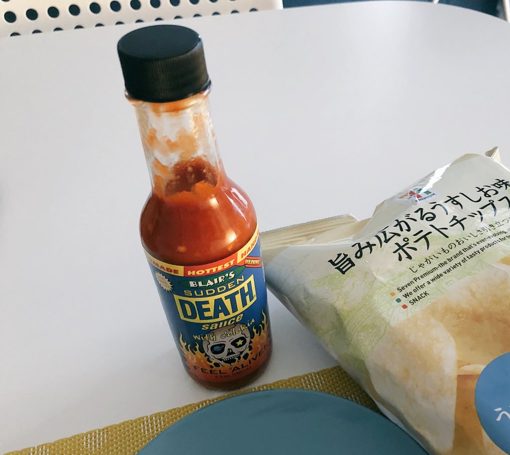 After watching the MKBHD Hot Ones video I felt like hitting the #hotsauce again. Blair’s Sudden Death with Jolokia on potato chips. I feel a bit strange now.