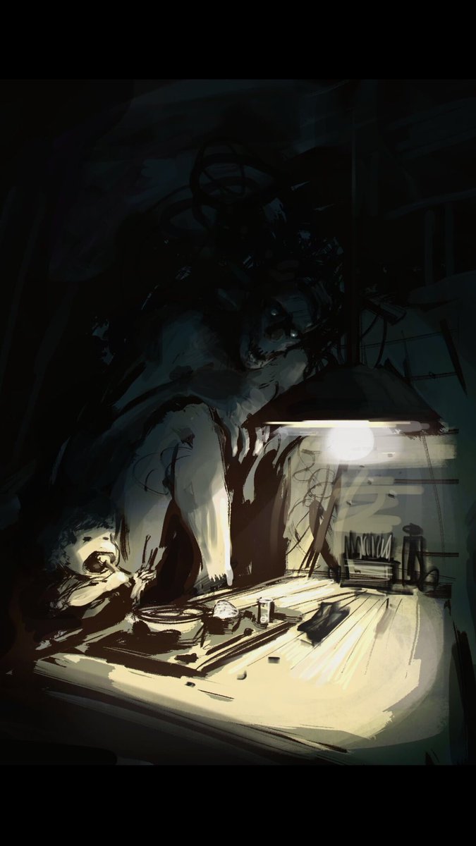 Love the creepy atmosphere...hope the monster gets to eat some noodles too.