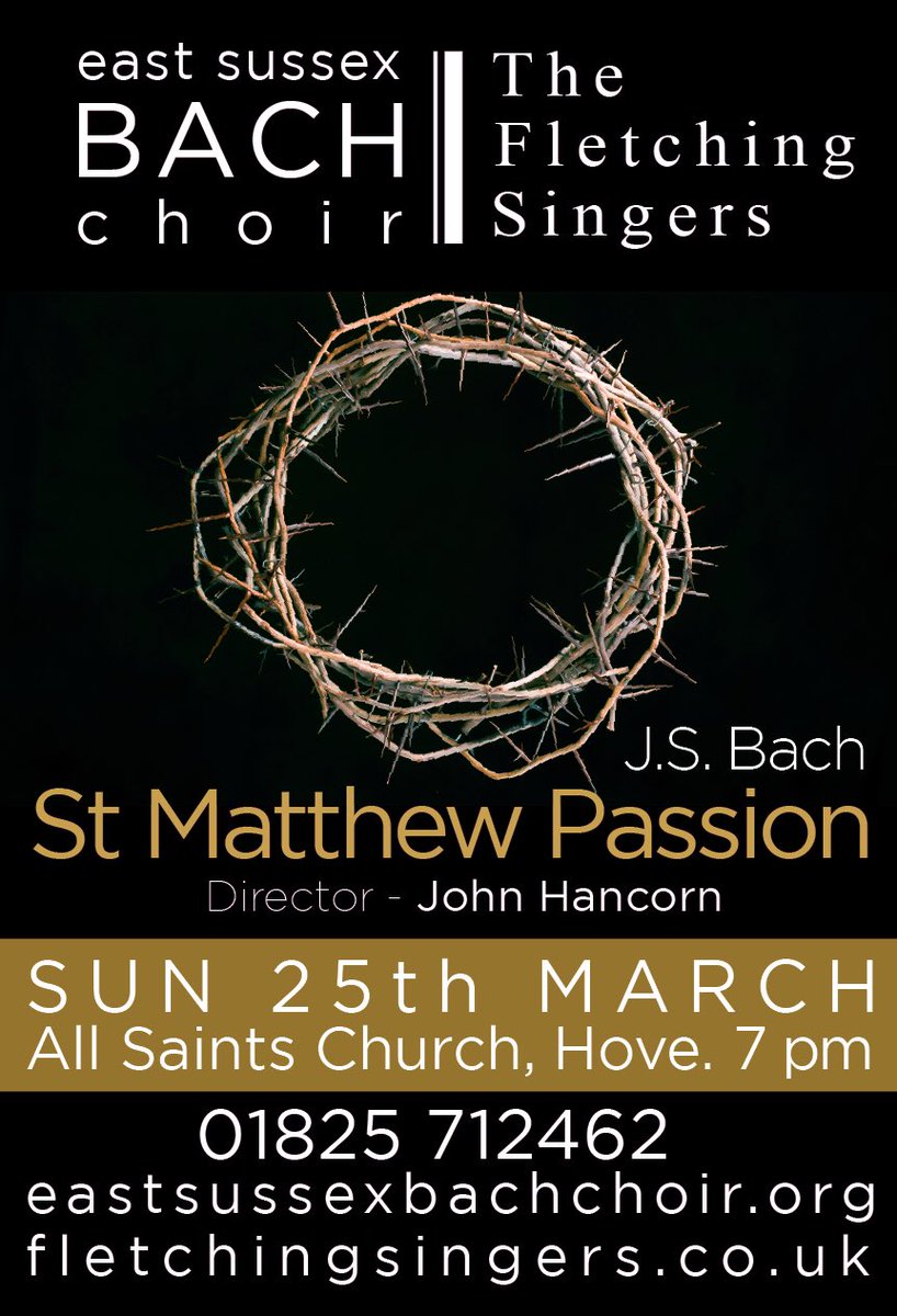 Don’t forget the our magnificent concert on Sunday 7.00pm St Matthew Passion at All Saints, Hove. With a stellar line-up of performers in a magnificent setting. Premium tickets are now sold out but plenty of £20 & £15 tickets remain. https://www.ticketsource.co.uk/fletchingsingers …pic.twitter.com/1vuvDLZBkp
