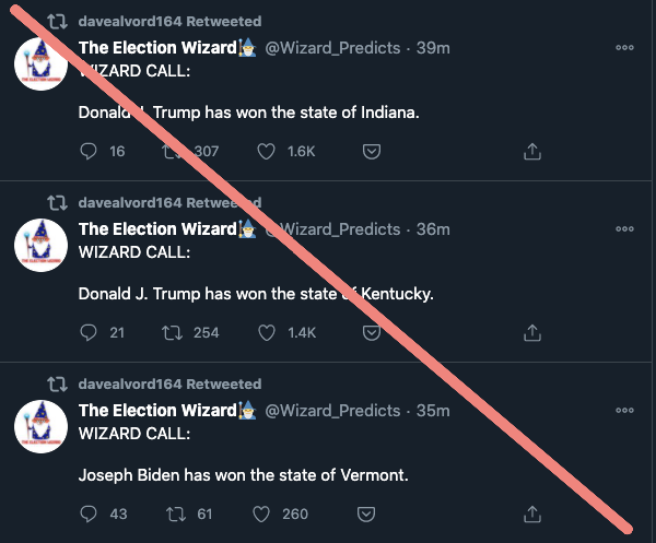 14. I don't know who needs to hear this but don't rely on something called a "wizard call" to tell you the results. Here's where you can see genuine results come in: https://www.buzzfeednews.com/2020-election pic.twitter.com/s9Ha3Id6BF