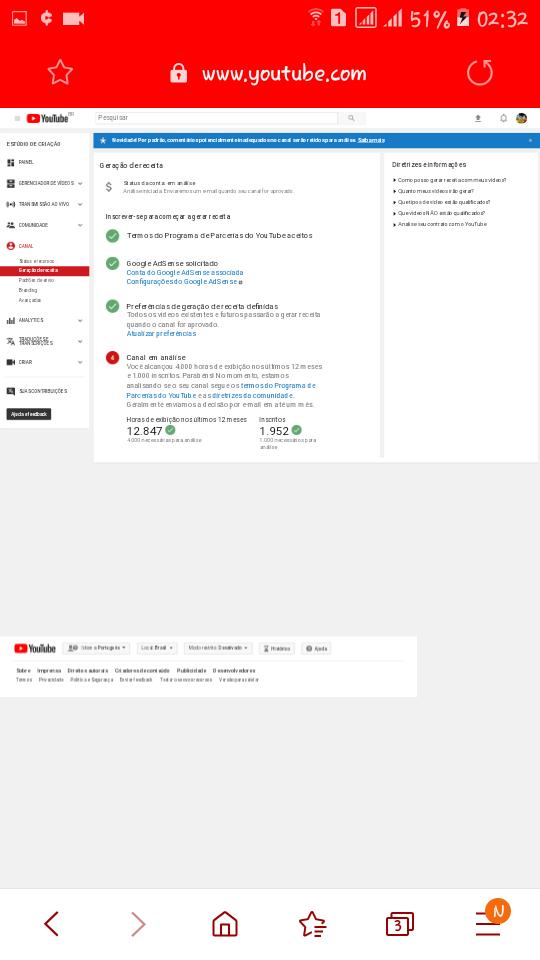Oi, Janeson! Poderia nos enviar uma captura de tela completa da página Status e recursos e da aba Monetização do seu canal, se possível? Ficamos aguardando.