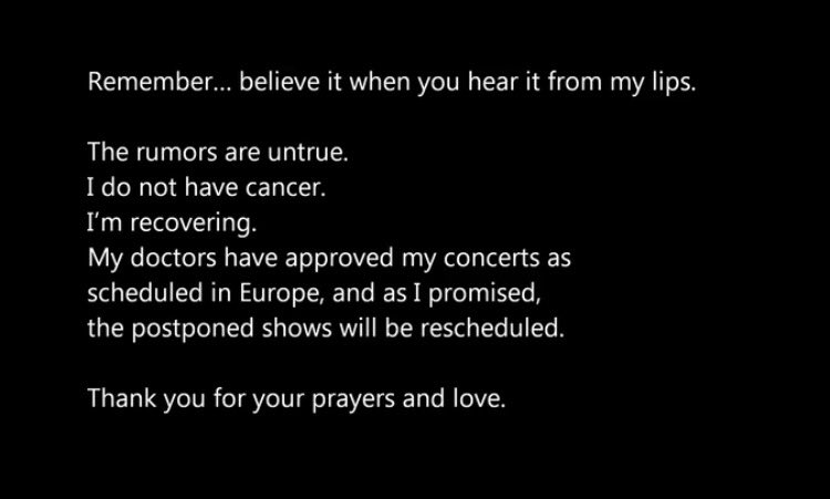 Delighted to hear the truth from lips. Media should not speculate the word cancer when many across the world are fighting it.