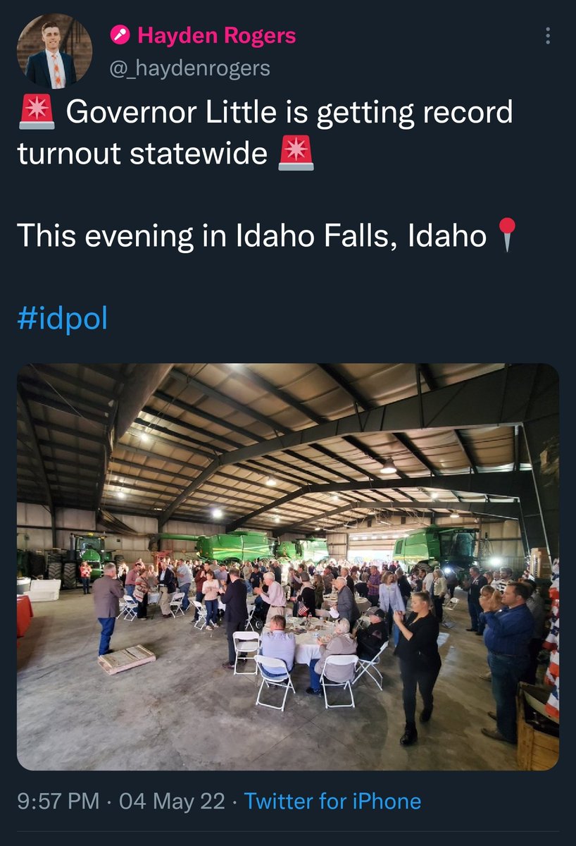 Average Idahoans aren't worried about hit pieces by the fake news media. They want more money in their pockets, they want formula for their babies, they want lower gas prices. Don't get distracted, that's what the fake news want. Get out and Vote on May 17th!