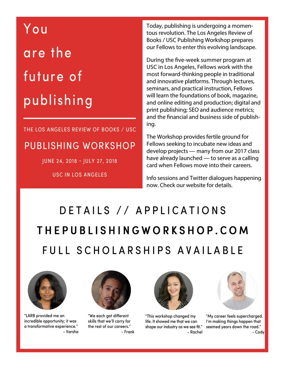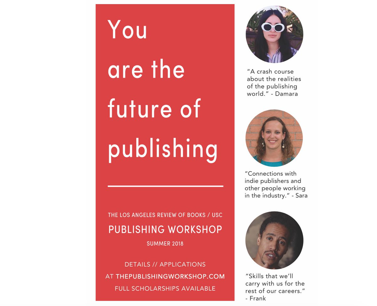 @LAReviewofBooks /@USC Publishing Workshop. Details and scholarship information available at http://thepublishingworkshop.com .#LARB#TheWorkshoppic.twitter.com/1c8hp9OGLv