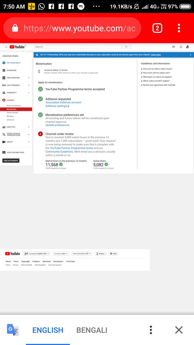 @YTCreators Hello, Team YouTube my channel completed the 11k+ watch time & 5k+ subscribers in previous 365 days & 11 months ago but still my monetization is not enabled please guide us. Channel Link https://www.youtube.com/channel/UCtCZt__6su5xb_R7ShmWe5Q …