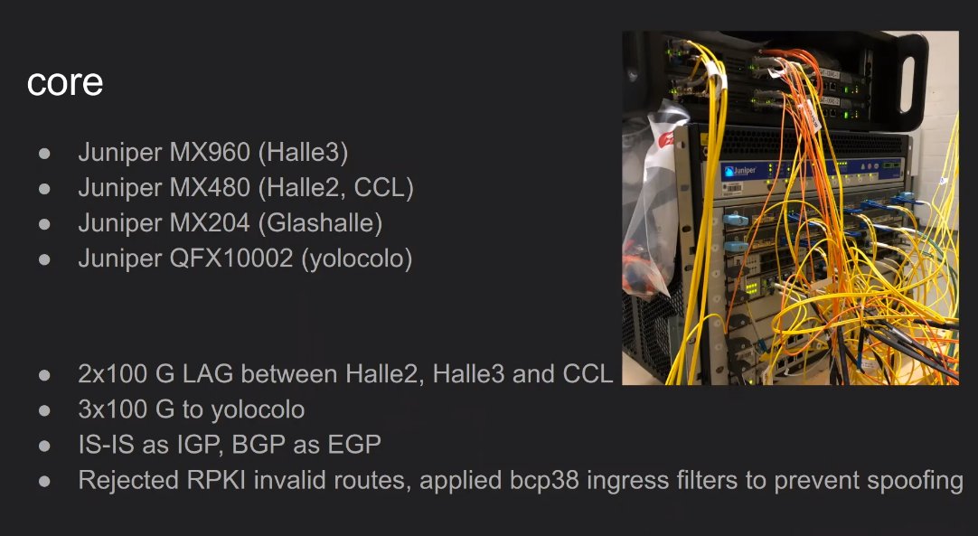 There were a few incidents: • Packletloss and missing RA's in WiFi - caused by Juniper vMX behaviour. • Broadcast storm took down switches in Halle 2 - issues with pixelflut client. • WiFi Controller resource exhaustion caused by zmap scanning • WiFi Outage (10 min)