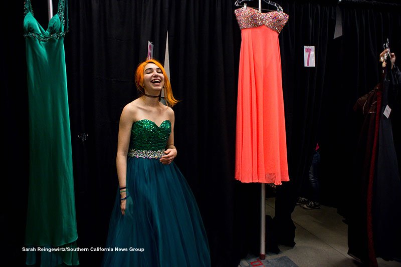 Hailley, 18, a homeless student who lives in a garage with her mother, finds her perfect prom dress during the Assistance League of Los Angeles' prom day for underserved and homeless high school seniors. The girls also got handbags, jewelry & shawls to go with the donated dressespic.twitter.com/mFxvGckgXw