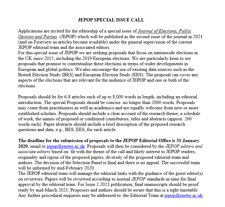 Just a reminder: Proposals for our special issue on UK elections are due at the end of the month. See below for details!pic.twitter.com/1Pr3Qf4AXn