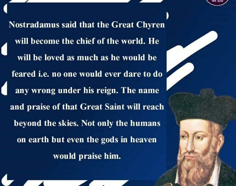 That metaphysical saint must be famous in the world. The knowledge told by him will be overshadowed for centuries. - Nastredamus's prophecy about Satguru Rampal Ji Maharaj.