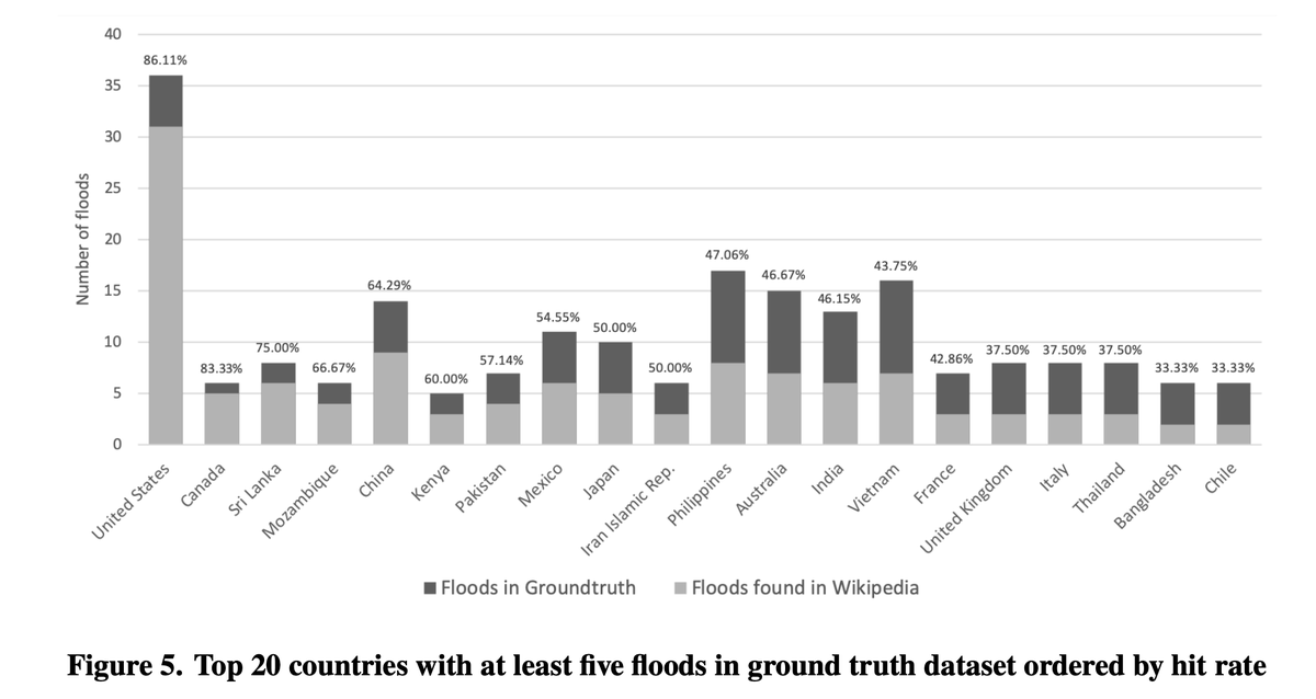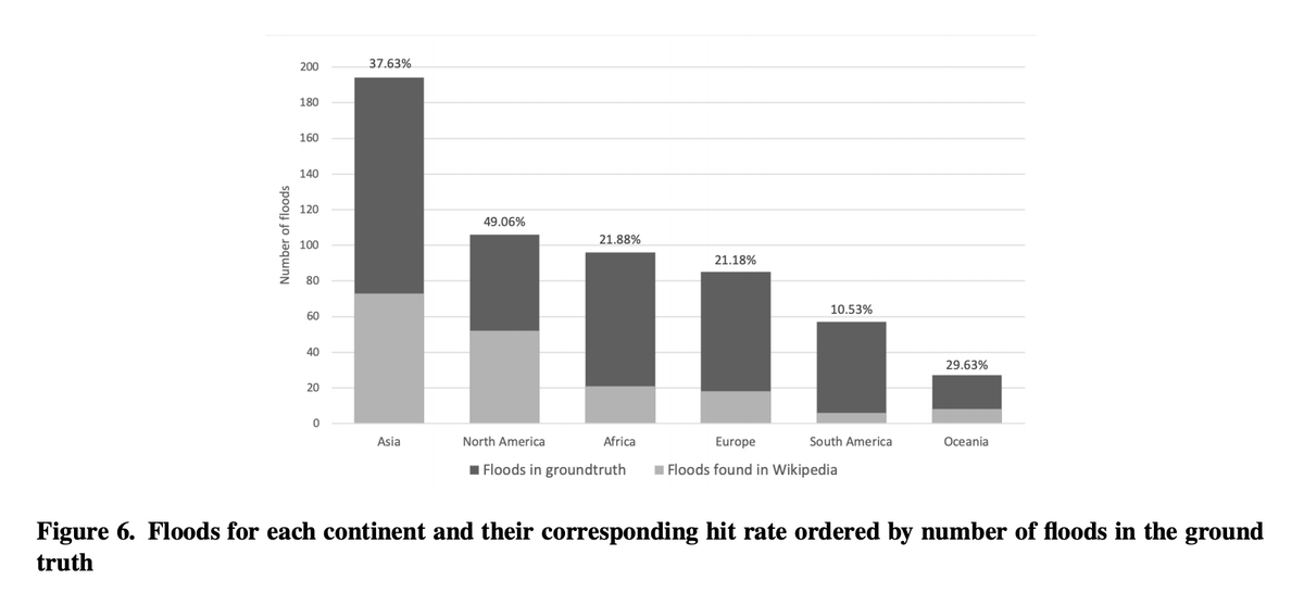 Tras obtener un ground truth robusto y los eventos recogidos en la Wikipedia en inglés (metodología en el Paper), procedimos a obtener estadísticas de la cobertura de inundaciones en base a diferentes parámetros que veremos a continuación.