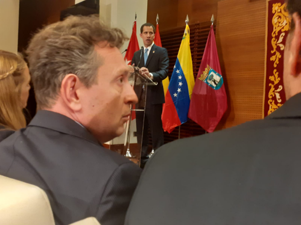 @jguaido, Presidente de la Asamblea Nacional de Venezuela en el Ayuntamiento de Madrid.@MADRID. Nuestro presidente@JavierCremades asiste al acto#Venezuelapic.twitter.com/7x7G9Se0Pa – mjesto: Palacio de Cibeles