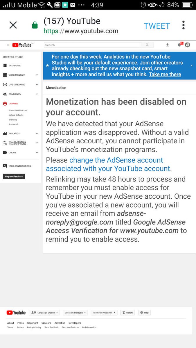 We'd like to look into it. Mind sharing a screenshot of your channel's monetization page: https://yt.be/help/v9Zf ? Keep us posted.