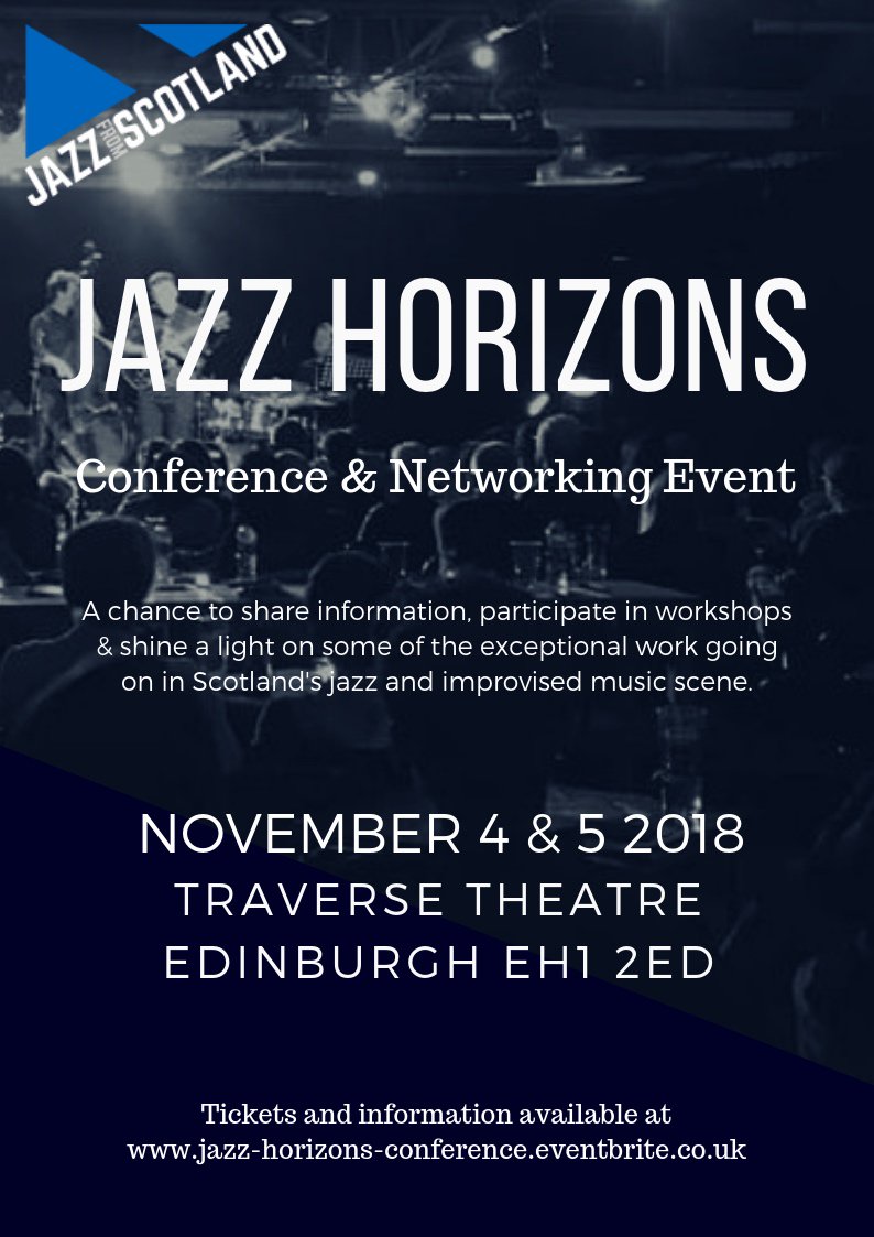 @JazzfromScot Horizons conference: 4th + 5th Nov 2018 at@traversetheatre, Edinburgh. Brilliant opportunity to enjoy live music, CPD workshops, bullet pitches, concerts and panel discussions. Lunch/refreshments included w networking in relaxed environment https://bit.ly/2O1T6Y6 pic.twitter.com/hXjWSNrUEF