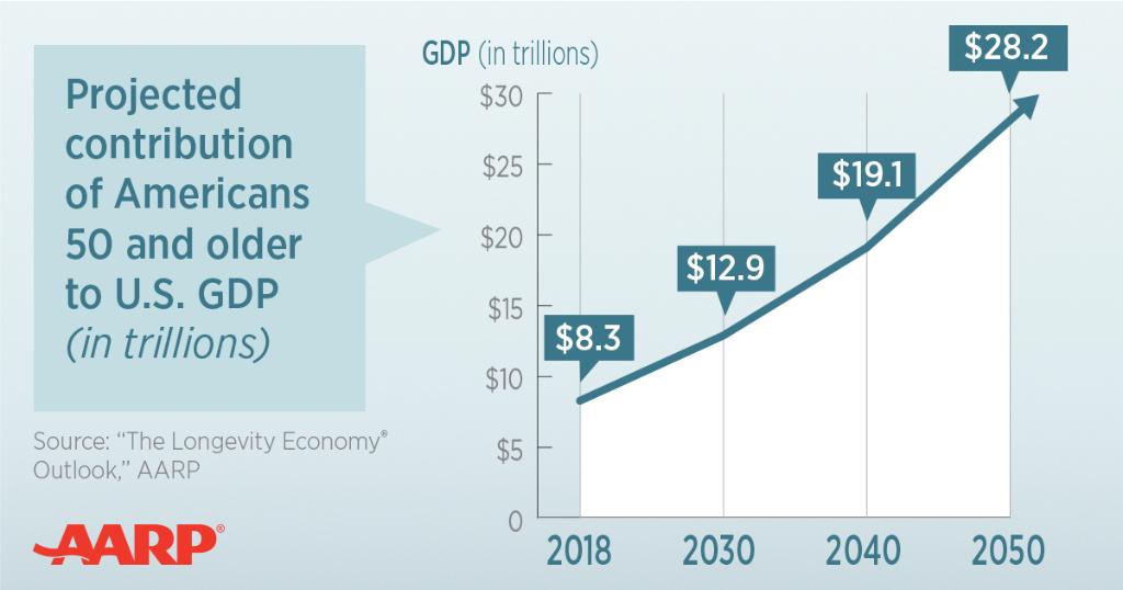 By 2050, the annual economic contributions of the 50-plus age group will triple, from $8.3 trillion to $28.2 trillion. Read The Longevity Economy® Outlook, a new report from
