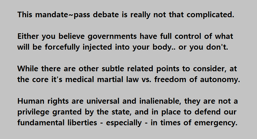 Re medical exemptions in Ontario It is unethical to force a medical procedure, as it violates consent. Consent *must* be given *freely*. Thus, whomsoever declares they do not consent is in the right. If people do not have right of refusal then rule of law has ceased