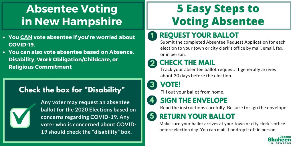 Everyone should have the right to vote safely and fairly. Granite Staters will have the opportunity to register and vote absentee in November, regardless of new developments in the pandemic. Make a plan to vote. RT and visit http://voteinnh.org  for more info.pic.twitter.com/V32I8A4J9I