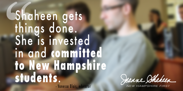 Letter from Vanessa, an NH educator: "Shaheen supports efforts to make college affordable" http://goo.gl/rSqIQS pic.twitter.com/7uKzOWjAqV