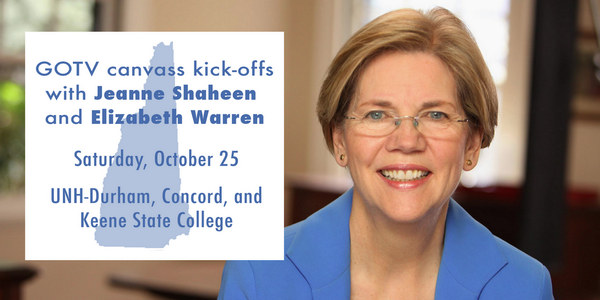 Join @elizabethforma for GOTV canvass kick-offs across the Granite State! RSVP here: http://jeanneshaheen.org/elizabethwarren pic.twitter.com/XwqFfLKSHF
