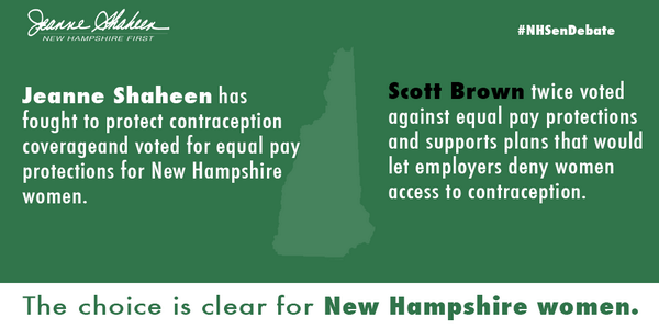 The choice in the election is clear for Granite State women. @SenScottBRown is wrong for New Hampshire #NHSenpic.twitter.com/7r5l5aRzTS