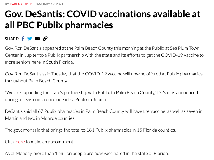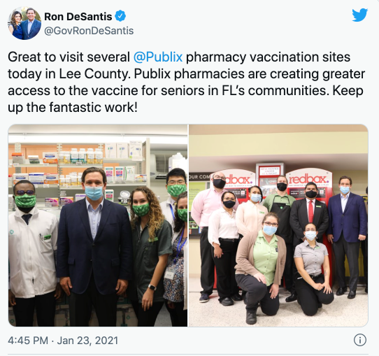DeSantis has *repeatedly* promoted the vaccines on local & national TV — focusing, correctly, on the most vulnerable Floridians — presiding as shots go into arms, live on-air. Hasn’t been subtle. Smearing him as insufficiently committed to COVID vaxxing is politics, not reality.pic.twitter.com/LjvFuZCKC1
