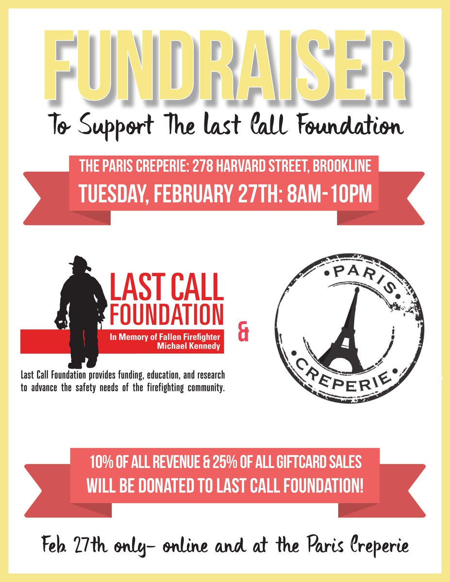 Today, we'll be donating 10% of all revenue and 25% of all gift cards sales to the Last Call Foundation! Please join us today for some crepes and to help support a great cause!pic.twitter.com/N5ngp76mZX