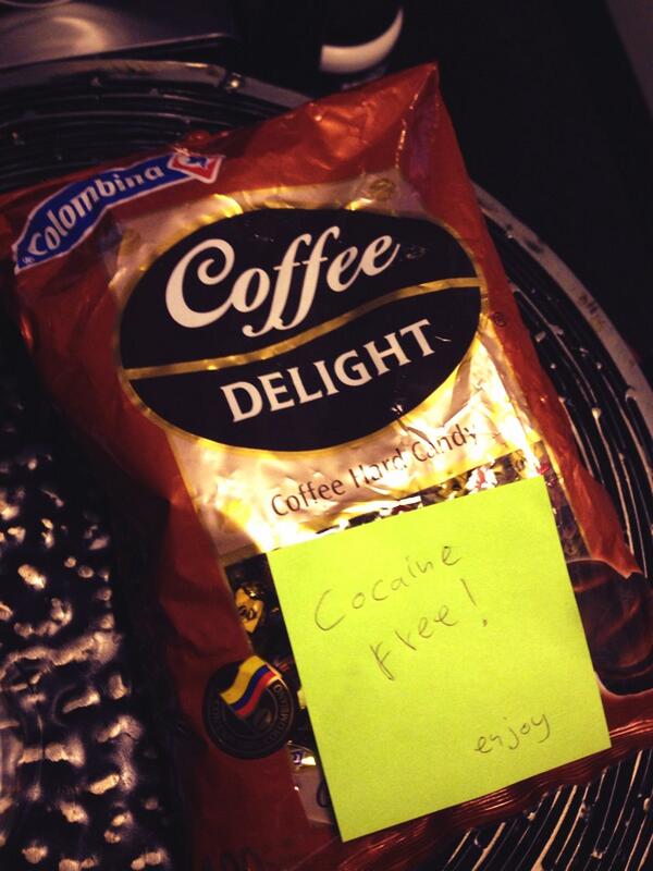 Colombian coffee candy ... Whew!! Glad they left that note.pic.twitter.com/9DhYUr3zTP