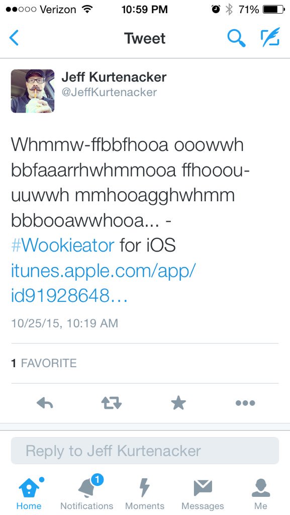 @JeffKurtenacker@Steven_Engle Some say that Wookietalk is really just an early adaptation of dubstep beatboxing.Thanks. Twitter will use this to make your timeline better. UndoUndo