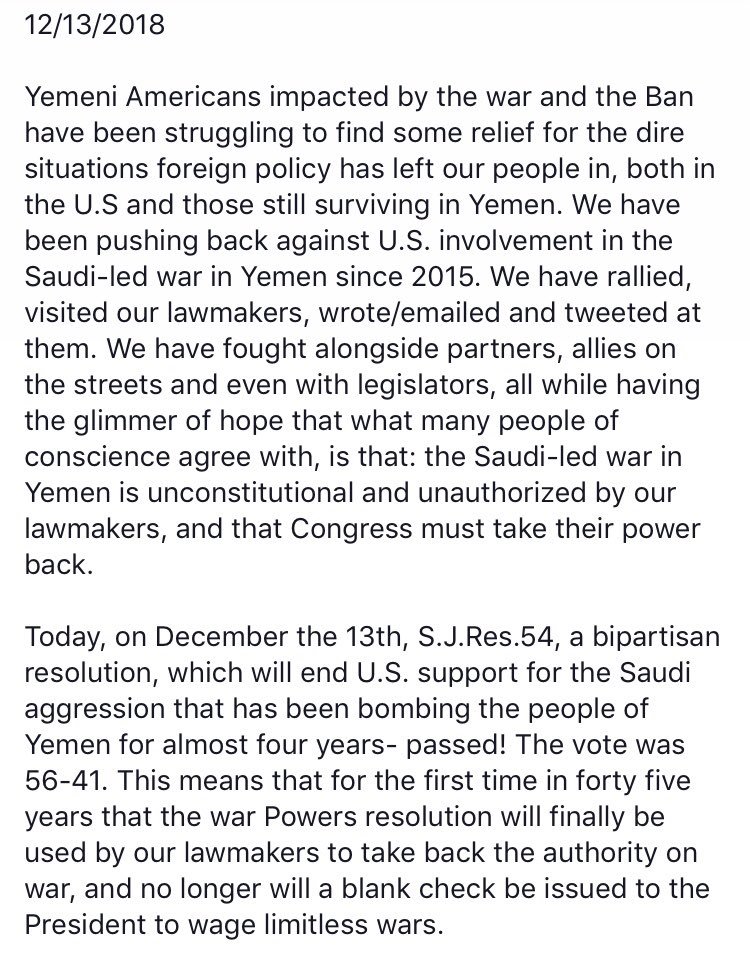 The Yemeni Alliance Committee has spent 2018 fighting against anti-Yemeni policies. We are dedicated to advocating for our communities, by organizing and equipping them with the tools to challenge discriminatory national security and foreign policies that impact Yemeni-Americanspic.twitter.com/F6oL0LEioE
