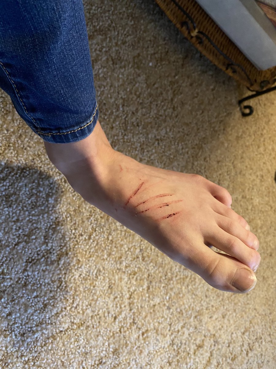 After jumping out a bedroom window....Rosie ran through the darkness to get away from the intruder & scratched her feet on briars & brush before hiding in a nearby ravine until