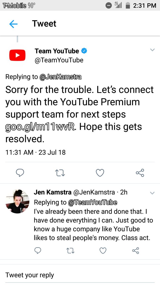 Fast to suggest I go to the same people I've already dealt with. But not fast to actually help anyone. @YouTube @TeamYouTube @YTCreatorspic.twitter.com/pLNkWVMRLy