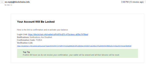 @blockchain Just got a phishing email pretending to be http://blockchain.info The link goes to http://blogchains.info pic.twitter.com/hL1mCpNnI8