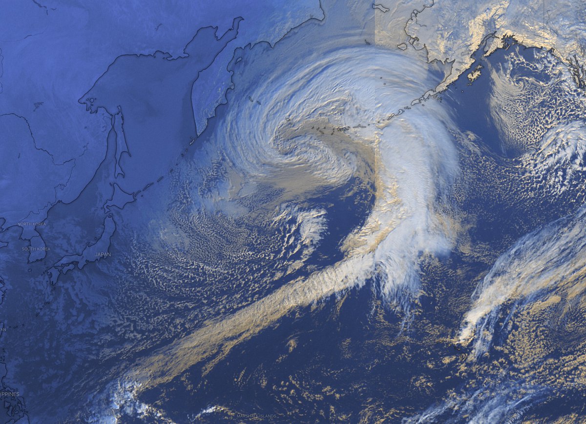Beast of a storm system in the North Pacific today, I would not want to be any shipping traffic there. Nearly 20ft seas a result of a storm with a pressure down to 944hpa And winds up to typhoon / hurricane strength. Makes my stomach turn thinking about those waves.pic.twitter.com/kk3YgGPOtq