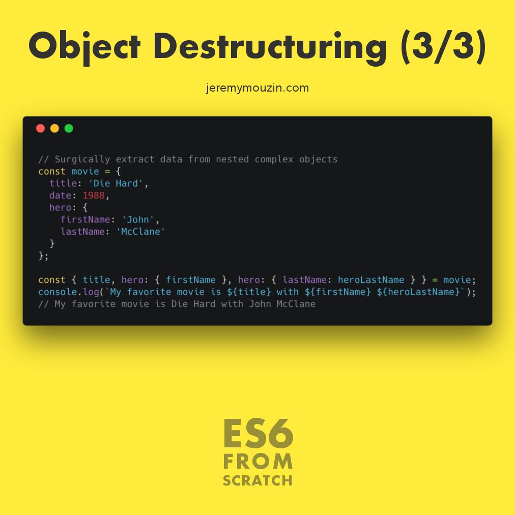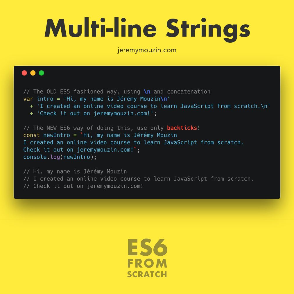 #JavaScript#ES6. If you want to#learn JavaScript without having any prior programming experience, get early access to my upcoming video course ES6 From Scratch on https://tinyletter.com/jeremymouzin pic.twitter.com/Mq0Ndf6lwL