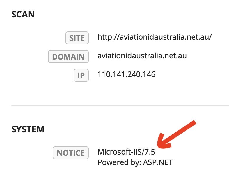 The response headers on Aviation ID Australia’s website give a nice tip to someone looking to hack the site.