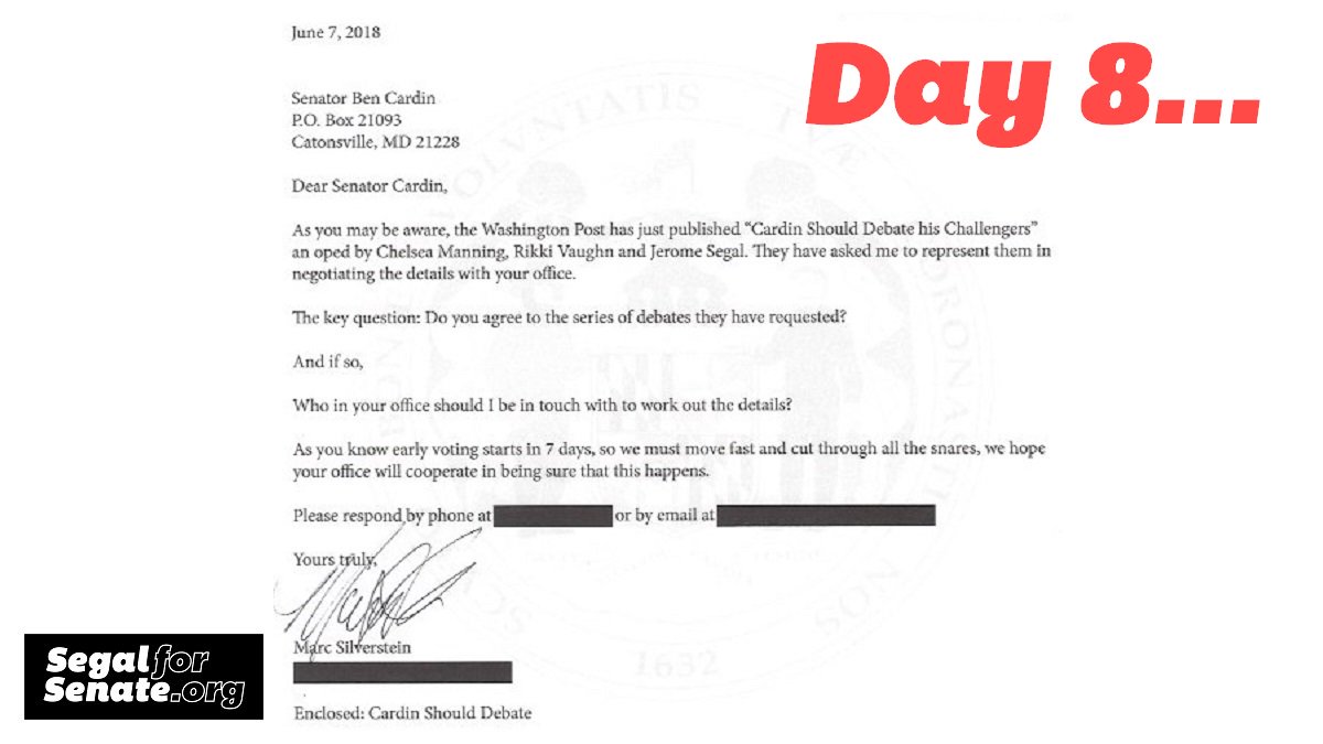 It’s now been eight days since we mailed you this letter, @SenatorCardin (@DNC), and you still haven’t replied. Are you going to debate us? Or are you going to continue to ignore us and the #Maryland voters?pic.twitter.com/863b5wpjkj