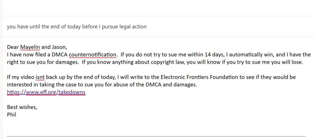 I've given #MayiAndJay until the of the day till I write to the @EFF to see if they are interested in taking the case for as much cash as I can crowdfund!