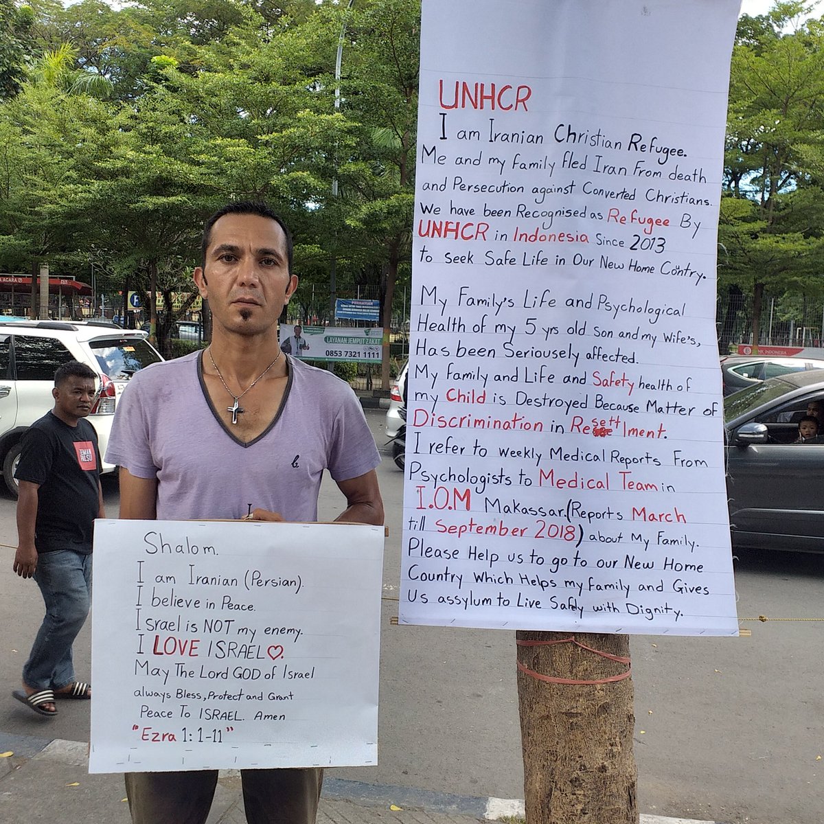 #JESUSITrustInYou I'm Iranian refugee @UN in #Indonesia &in FrontOf #UNHCR #IOM #Makassar I shared my message to People of 🇮🇱🇺🇸&🌍. I Believe in #God #Peace #Love #Humanity. Behaviors of Regim in Iran isNot my Representative #Israel isNOT my Enemy I♥️&Pray& Bless @Israel 🙏✝️🔯🕊 https://twitter.com/John_Arash2345/status/1133384684916940802 … pic.twitter.com/8zNQ8u45uL