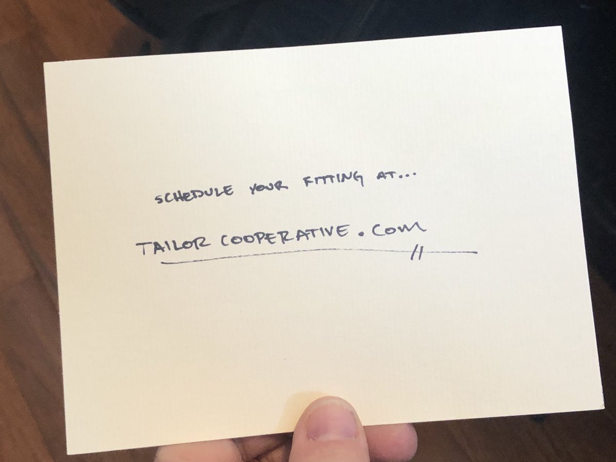 I'm totally touched! @tailorcooperative sent this to me, no strings attached. The note itself was kind enough to have my attention! Of course I'll go in for a fitting and I'll share details here. Reply what type of suit I should have made for me!pic.twitter.com/ogrRmw3FFM