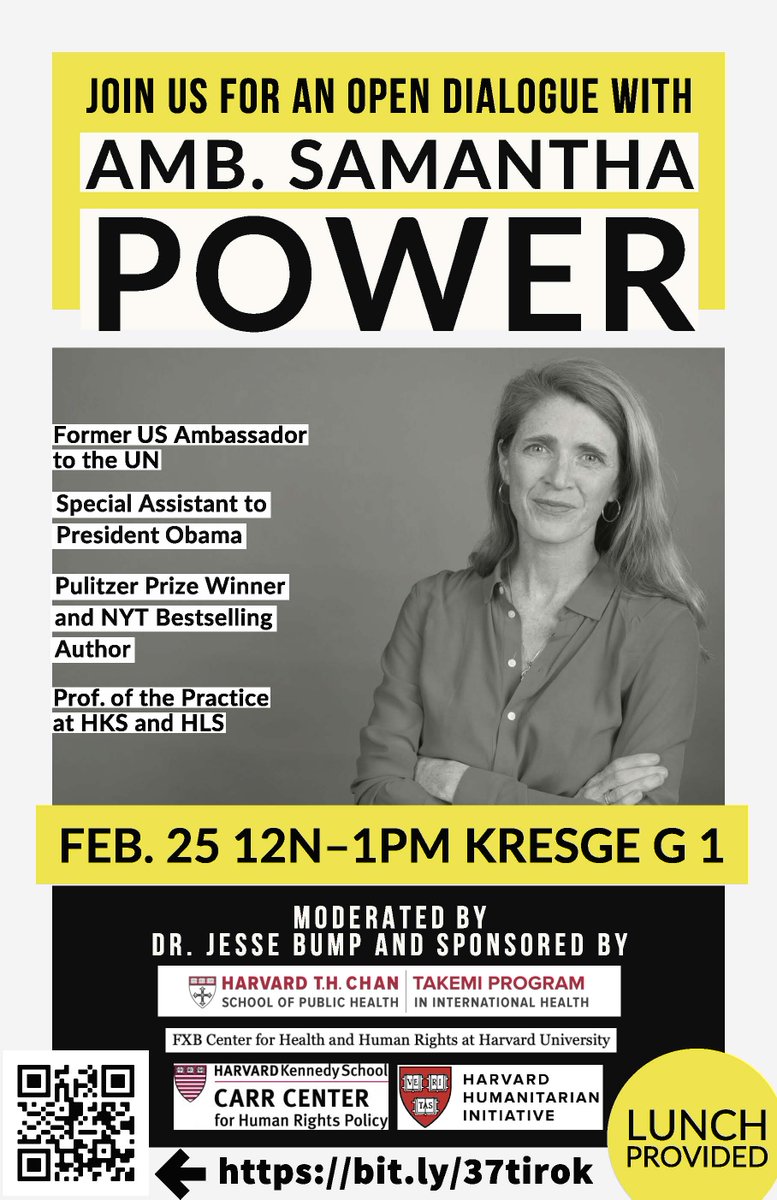@SamanthaJPower!@HHI@CarrCenter@HarvardFxb@HarvardChanSPH RSVP here: https://bit.ly/37tirok pic.twitter.com/4m2ofL1Fyu