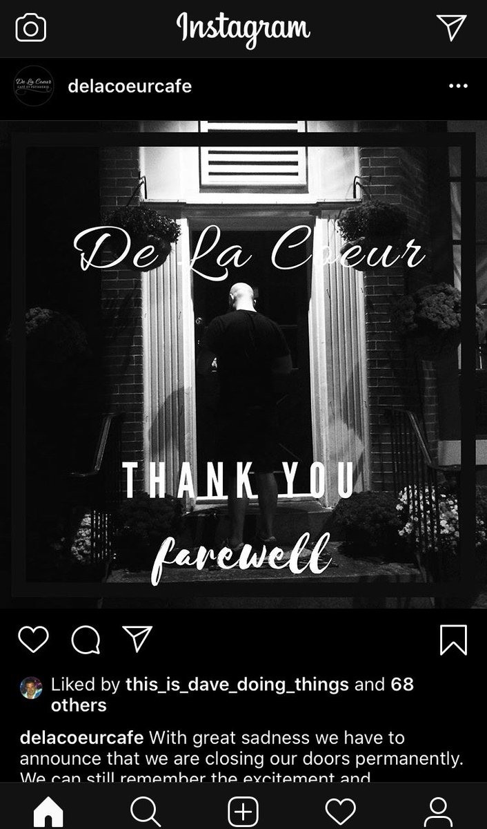 Last week's guest @alexsianni he announced that their restaurant @DeLaCoeurCafe will be permanently closed.pic.twitter.com/U7p0PUMYo2