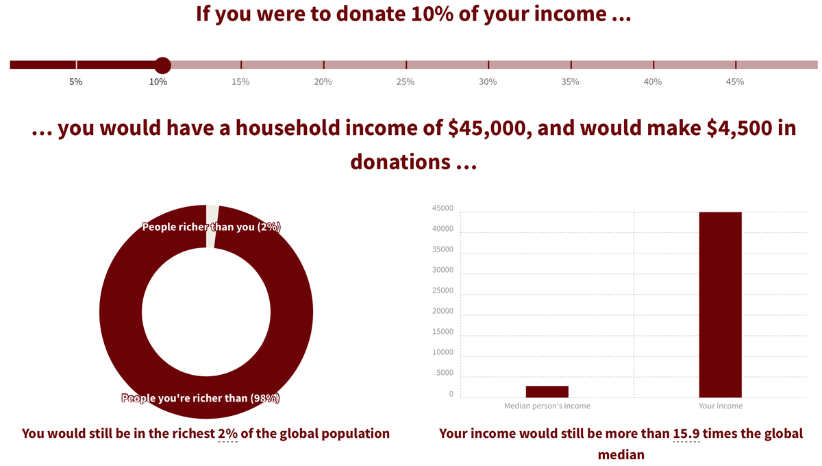 $50,000 is a LOT of money, and donating 10% (which is way more than people in that study think is appropriate) would still put you in the richest 2% of the global population--while making a huge impact on people in developing countries. https://www.givingwhatwecan.org/get-involved/how-rich-am-i/ …pic.twitter.com/kh7yr3dllx