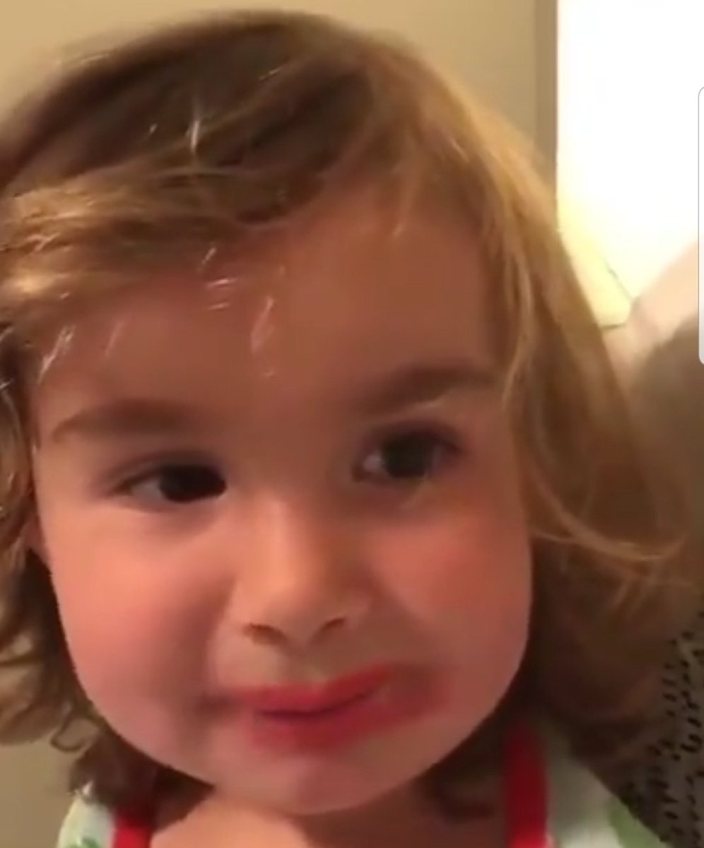 The moment you realize you gave birth to the cutest confident liar ever, pro-level