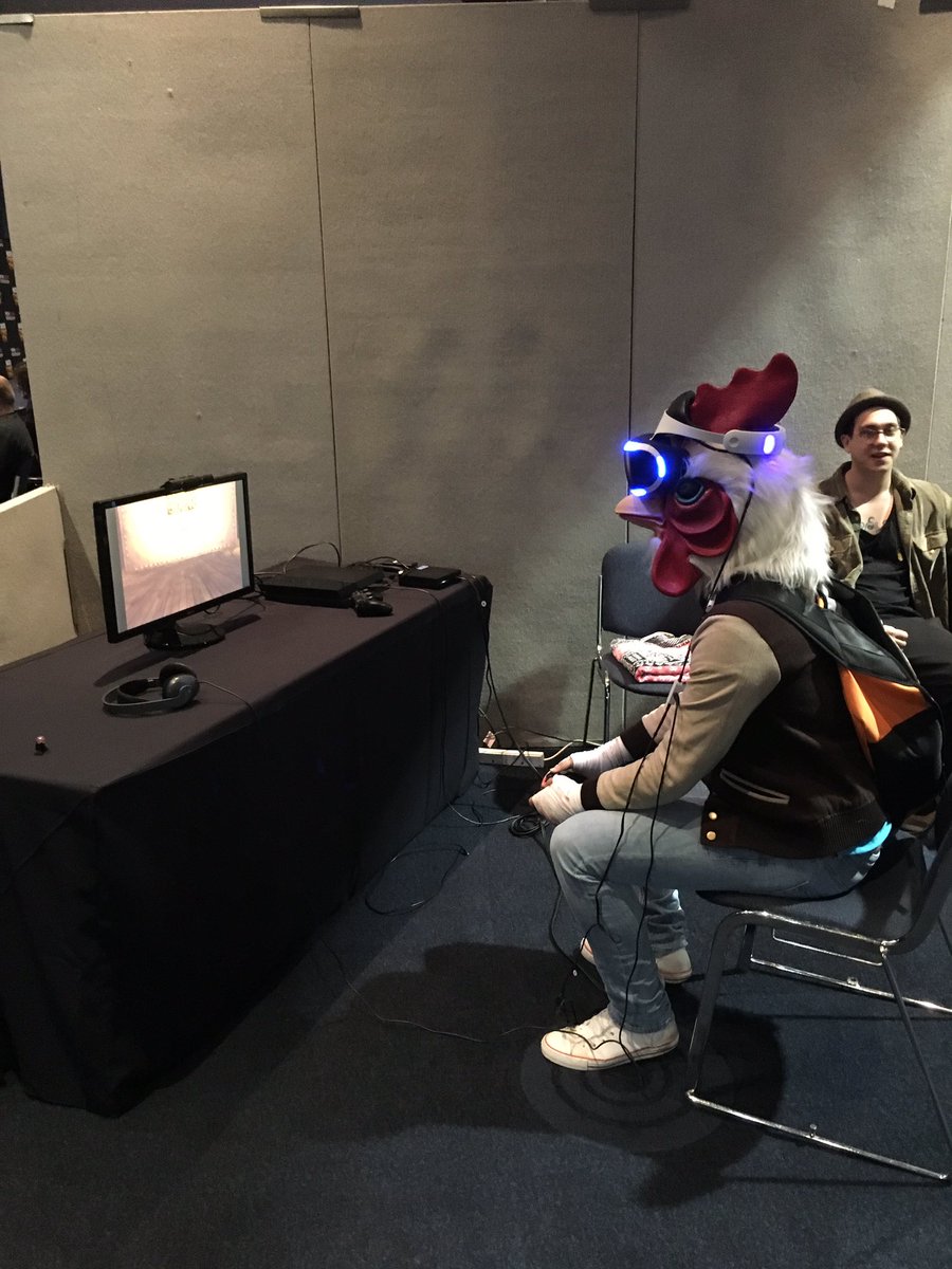 Jacket dropped by to give @TheLostBearGame a play. #ComicCon #mcmMCR2017 #hotlinemiami #PSVR #ps4pic.twitter.com/5boWOV7UYo